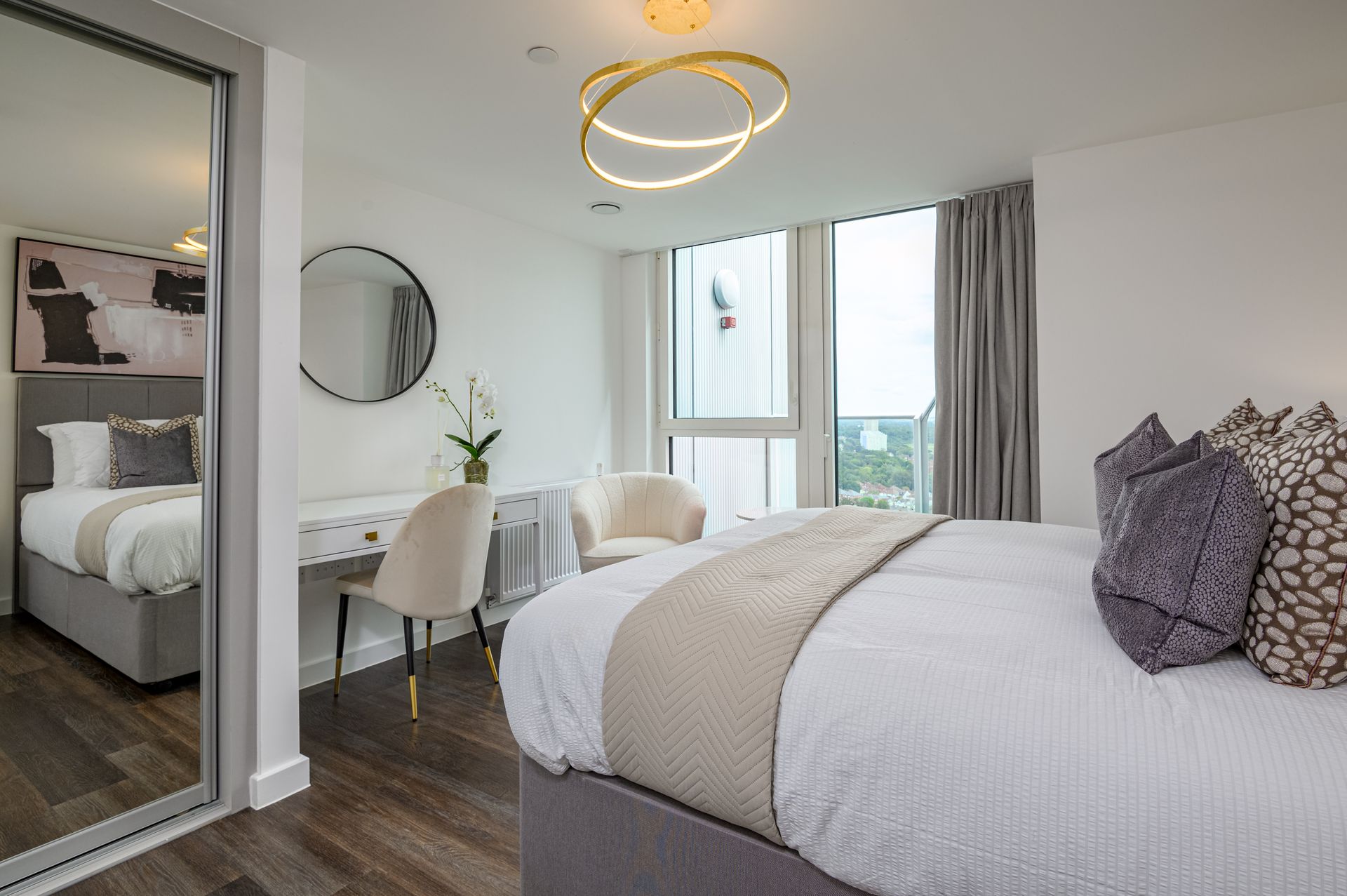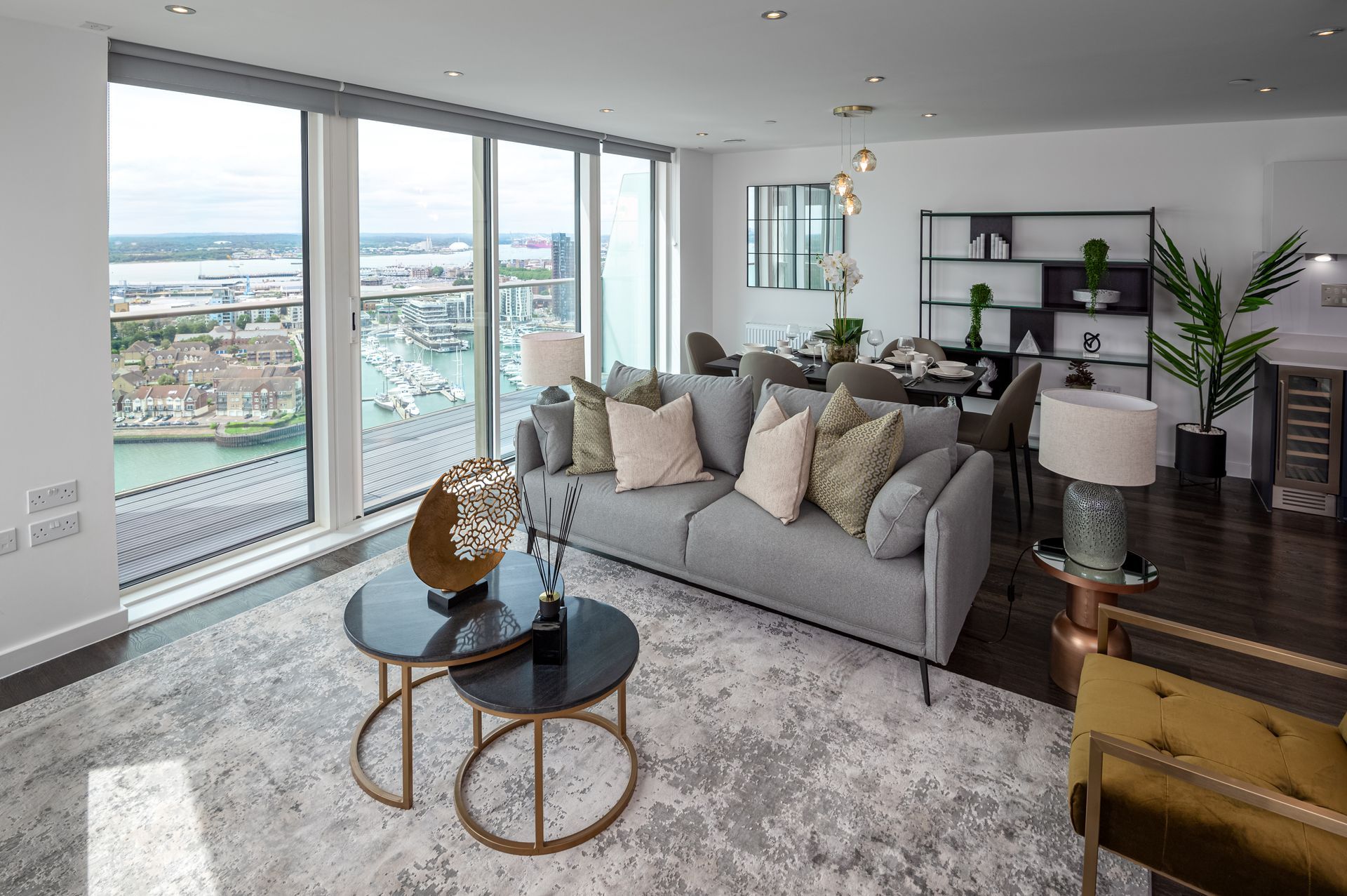 The finest apartments in Southampton's tallest residential building. Two bedrooms, two bathrooms, with exceptional views across the River Itchen and Southampton Water beyond.